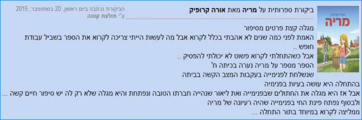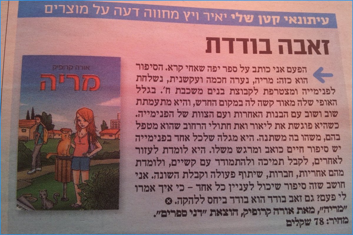 אהבתי במיוחד את החברות בין מריה לנער ואת ההתמדה של מריה בפרוייקט שלה.
